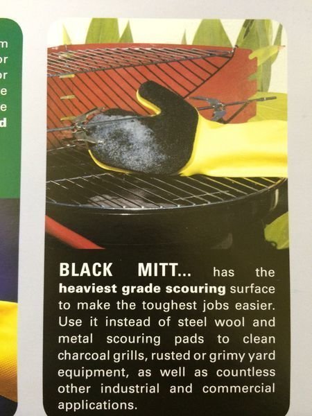 karkea hankaus-käsine, soveltuu esim. grillien puhdistukseen, ruoste ym. Musta sieni + keltainen hanska