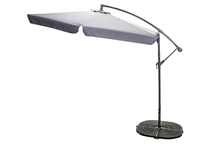 Laadukas ’sivuun aukeava’ päivänvarjo. Kuvassa näkyvät painot ei sisälly pakkaukseen.