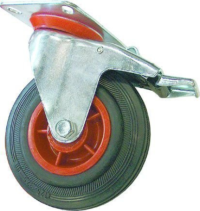 Pyörän Ø 75mm, kääntyvä malli jarrulla. Metallivanteella. Kantavuus 60kg.