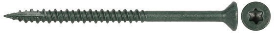korroosiosuojattu. – uppokanta, Torx TX25. – leikkaava kärki. – senkkaava kanta. – kaksoiskierre (HI-LO). – soveltuu esim. painekyllästetylle puulle. – kestää suolapesua 1500 h. – väri vihreä. – koko (d x L) 5 × 90 mm. – kierteen pituus (b) 50 mm. – kannan halkaisija (dk) 10 mm. – 100 kpl / pakkaus